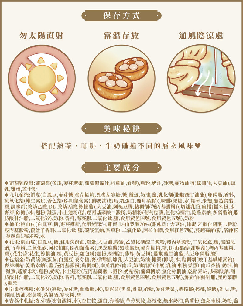 ♦過敏原資訊:本產品含有蛋、牛奶、麩質之穀物、大豆、花生、芝麻、堅果類及其製品