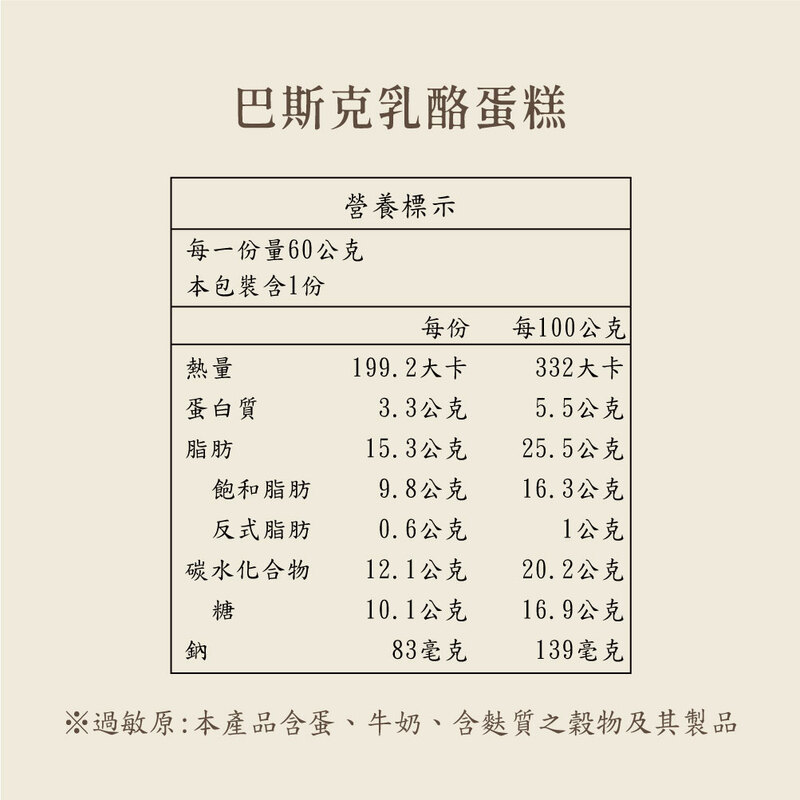 乳脂起士(牛奶,乳脂,鹽,刺槐豆膠,關華豆膠,乳酸菌),愛樂薇動物性鮮奶油(鮮奶油,鹿角菜膠),雞蛋,砂糖,海藻糖,鑽石麵粉