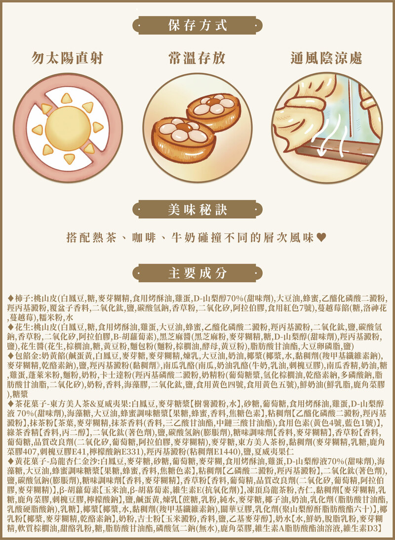 ♦過敏原資訊:本產品含蛋、牛奶、大豆、含麩質之穀物、花生、芝麻、堅果類及其製品