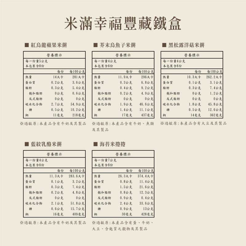 ♦過敏原警語:本產品生產製程廠房,其設備或生產管線有處理蛋、牛奶、含麩質之穀物、大豆、花生、芝麻、椰子、芒果、堅果類、魚類、甲殼類等及其製品,對其過敏體質者請留意
