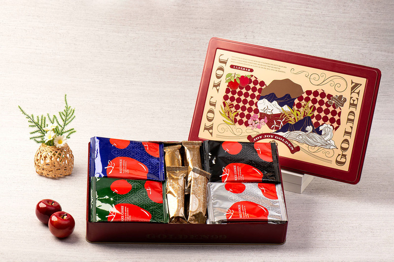 紅烏龍蘋果(5g/入)+芥末烏魚子+黑松露洋菇+藍紋乳酪(4g/入)+海苔米捲捲(7g/入) -