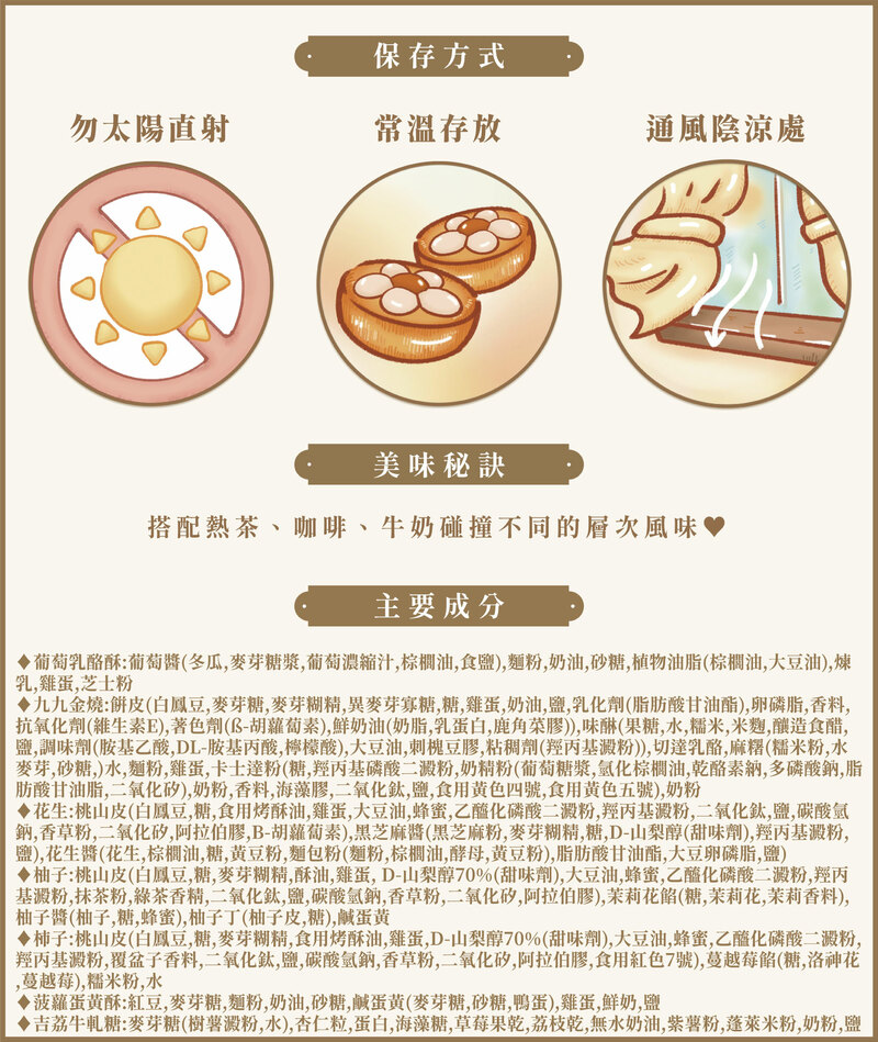 ♦過敏原資訊:本產品含蛋、牛奶、大豆、含麩質之穀物、花生、芝麻、堅果類及其製品