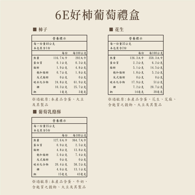 柿子1(40g/入)+花生2(35g/入)+葡萄乳酪酥5(35g/入)