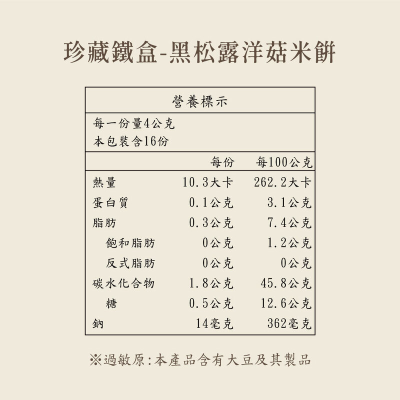 • 珍藏鐵盒-黑松露洋菇米餅 Truffle Mushroom Rice Cookie
