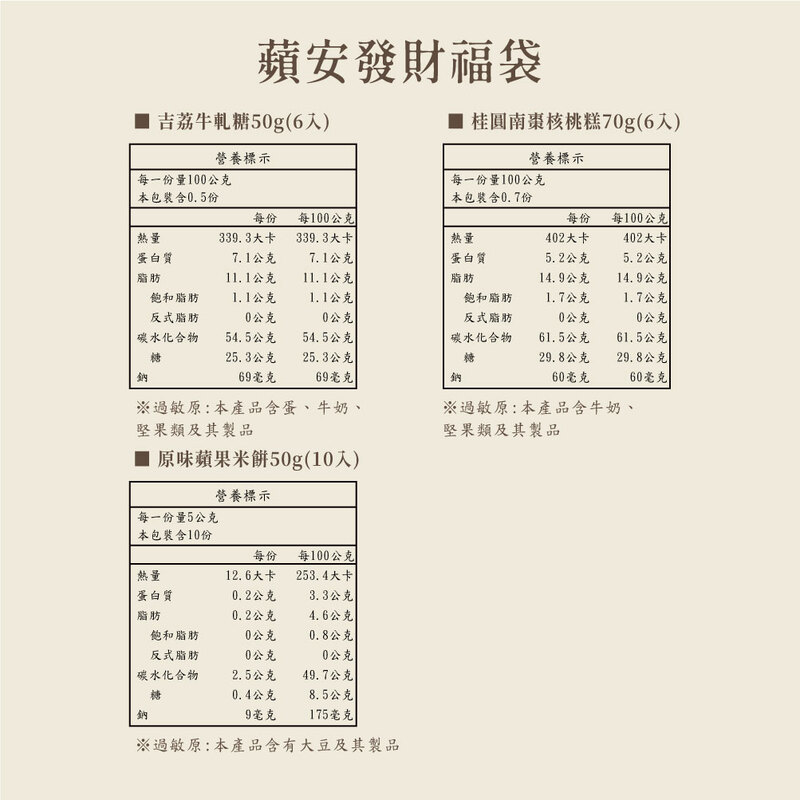 ♦過敏原資訊:本產品含本產品含蛋、牛奶、大豆、堅果類及其製品