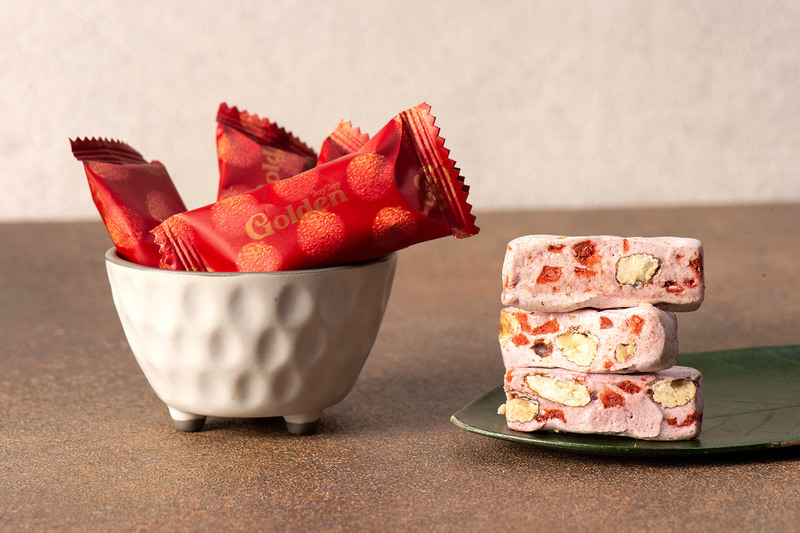 ♦吉荔牛軋糖:麥芽糖(樹薯澱粉,水),杏仁粒,蛋白,海藻糖,草莓果乾,荔枝乾,無水奶油,紫薯粉,蓬萊米粉,奶粉,鹽