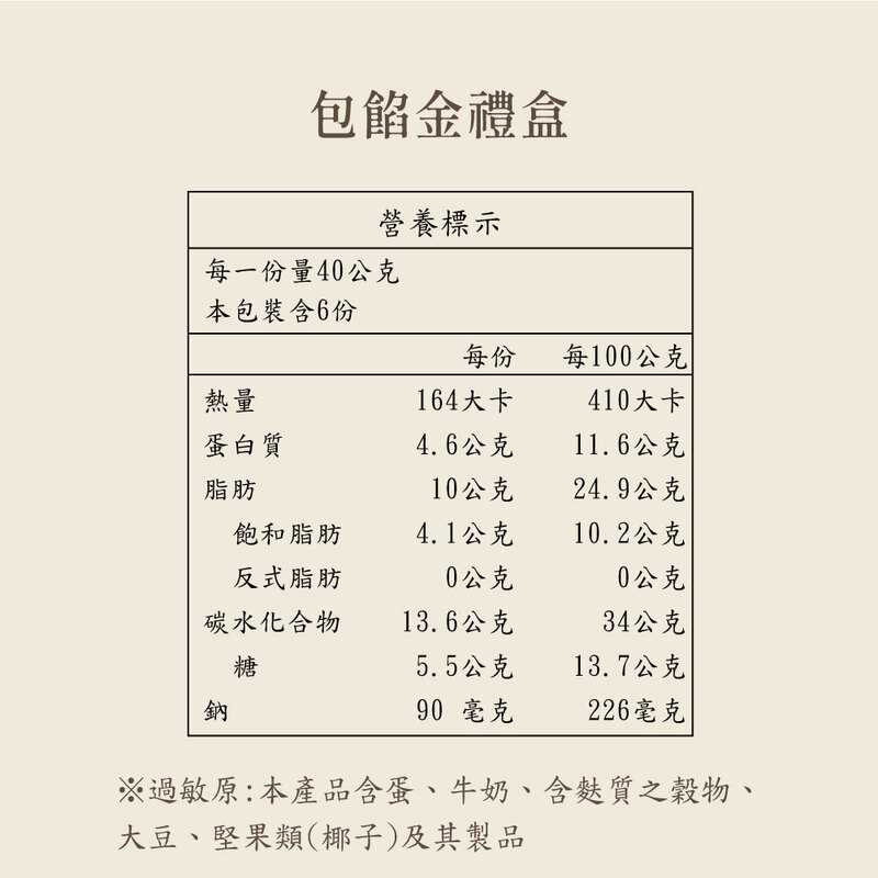 ♦過敏原資訊:本產品含蛋、牛奶、含麩質之穀物、大豆、堅果類(椰子)及其製品