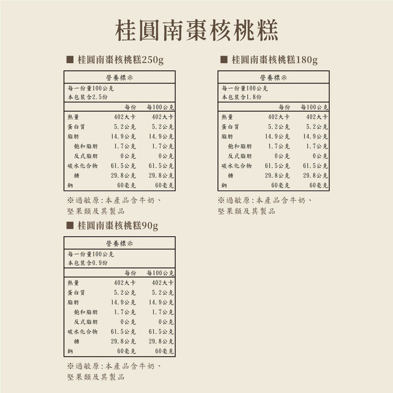 ♦過敏原資訊:本產品含牛奶、堅果類及其製品